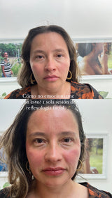 La reflexologia facial es en realidad la protagonista de esta experiencia. Crea toda la magia porque llegamos a niveles profundos de tu ser, alineando todo el Sistema nervioso autónomo, relajando tus ondas cerebrales y cambiando la química interna de tu cuerpo. Osea, con certeza de aquí renace una versión tuya.